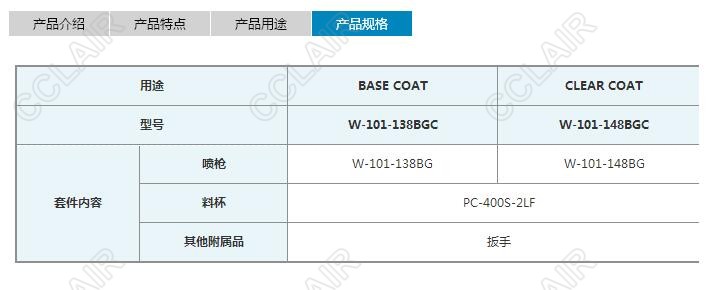 W-101-138BGC,W-101-148BGC,各工序專(zhuān)用噴槍