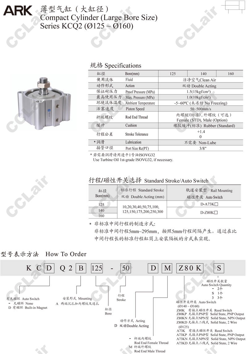 KCQ2A125,KCQ2A140,KCQ2A160,KCQ2A125-100,KCQ2A140-175,KCQ2A160-125,KCQ2A140-40,ARK薄型氣缸