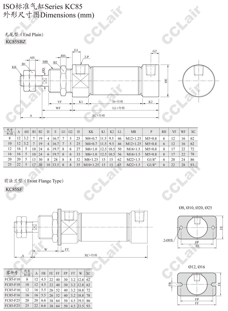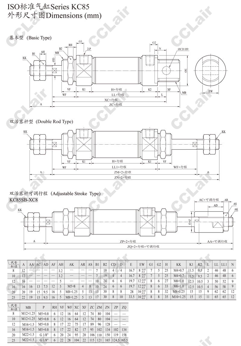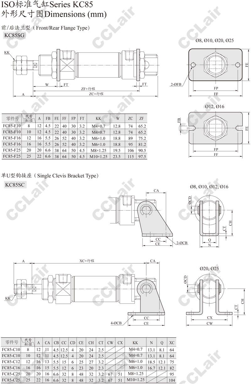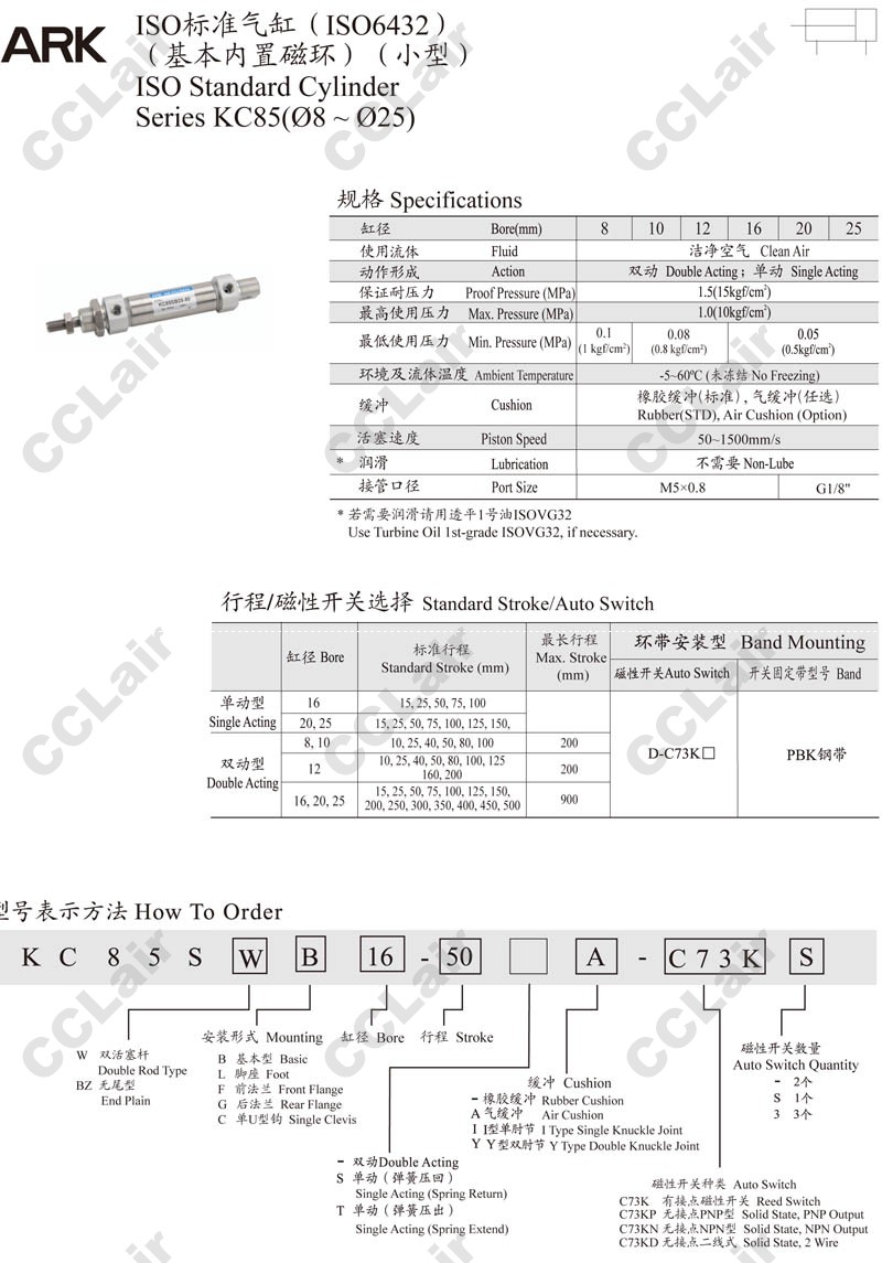 KC85SWB,KC85SBZ,KC85SG,KC85SL,KC85SC,KC85SF,KC85SG8-80,KC85SWB8-100,ARK標準氣缸