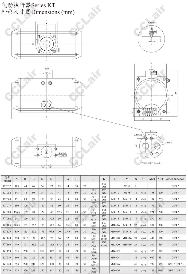 詳細信息 KT032,KT052,KT063,KT075,KT083,KT092,KT105,KT125,KT140,KT160,KT190,KT210,KT240,ARK氣動(dòng)執行器