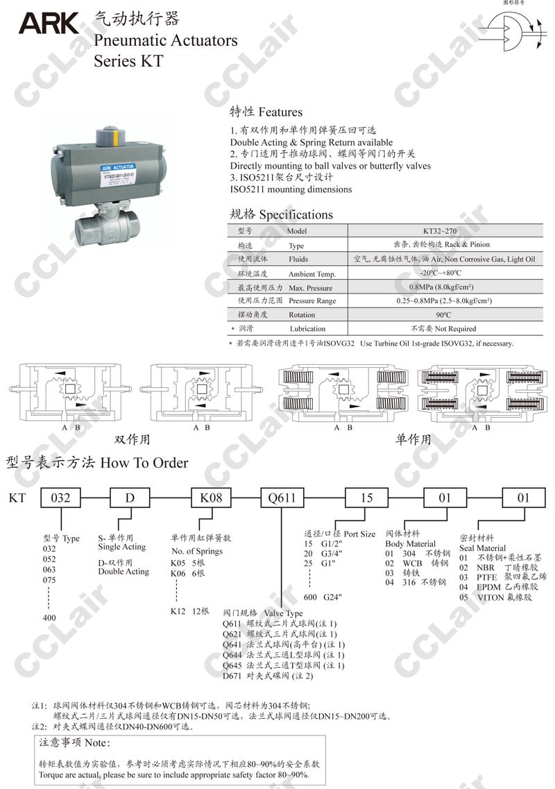 KT032,KT052,KT063,KT075,KT083,KT092,KT105,KT125,KT140,KT160,KT190,KT210,KT240,ARK氣動(dòng)執行器