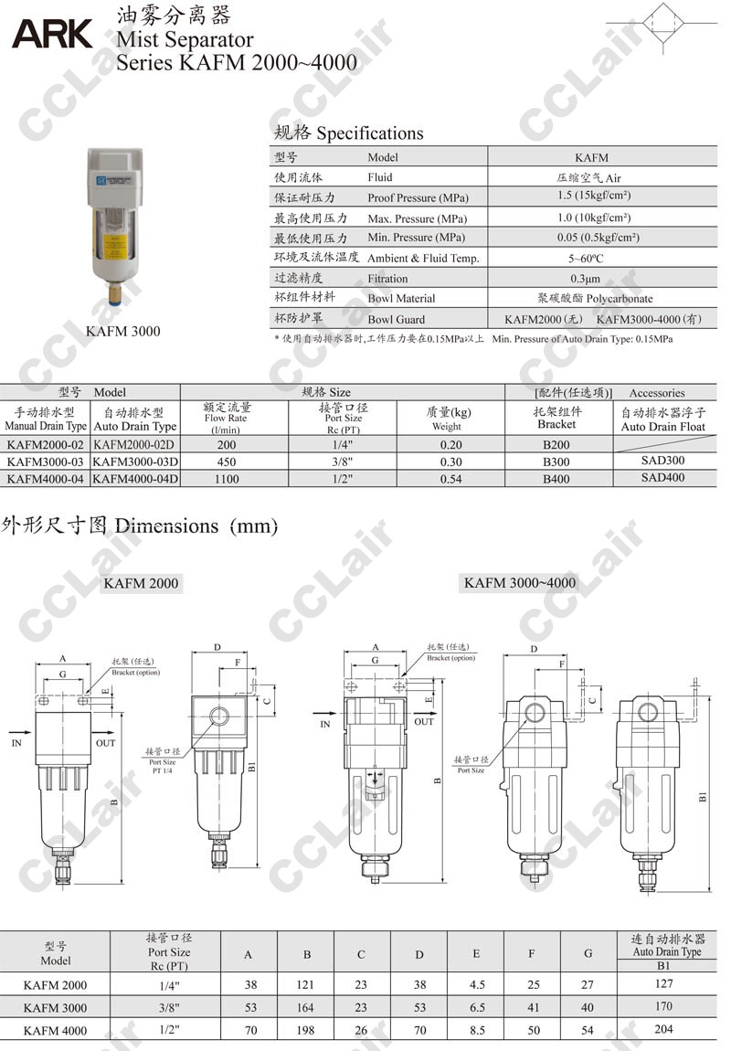 詳細信息 KAFM2000-02,KAFM2000-02D,KAFM3000-03,KAFM3000-03D,KAFM4000-04,KAFM4000-04D,ARK油霧分離器