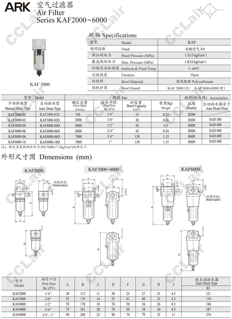 詳細信息 KAF2000,KAF3000,KAF4000,KAF6000,KAF3000-03,KAF6000-10D,KAF4000-06D,ARK空氣過(guò)濾器