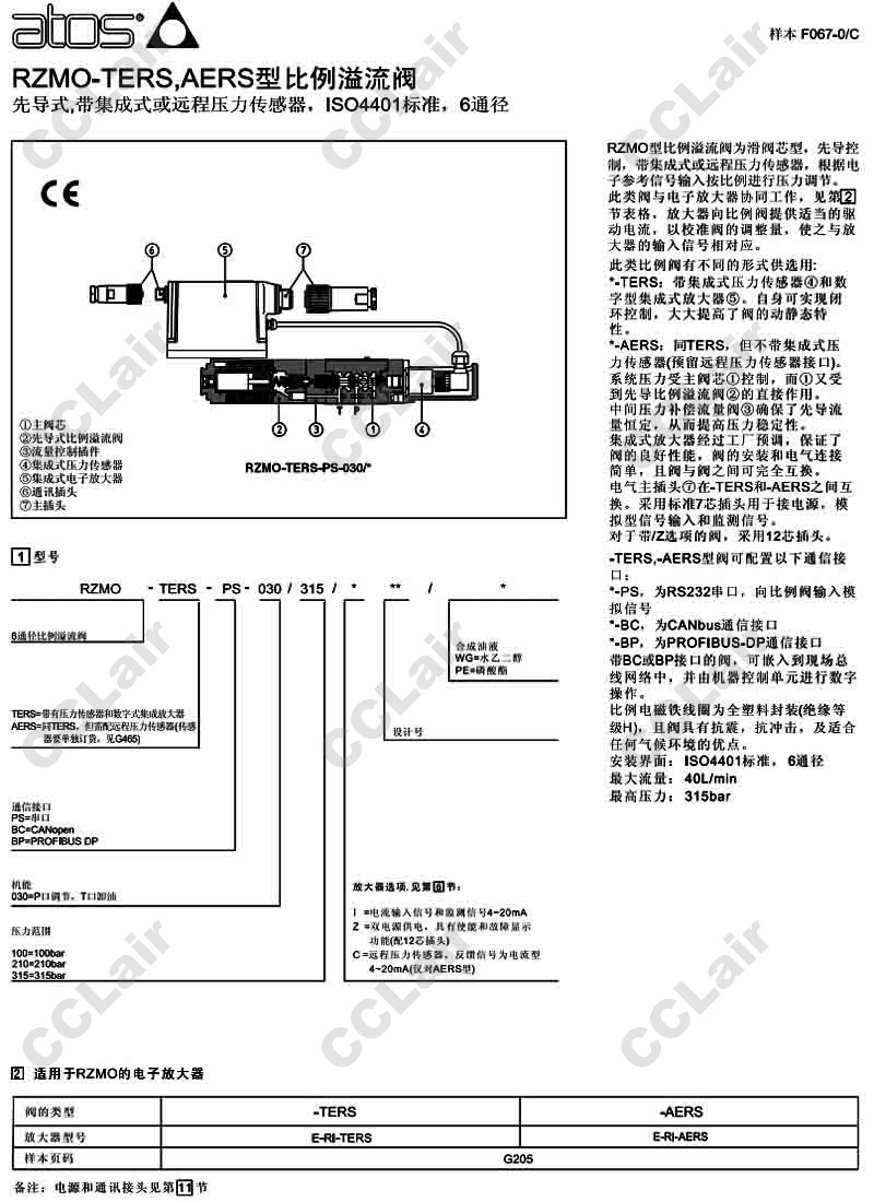詳細信息 RZMO-AERS,RZMO-TERS,RZMO-TERS-BP-030/315,RZMO-AERS-PS-030/100,阿托斯ATOS比例溢流閥