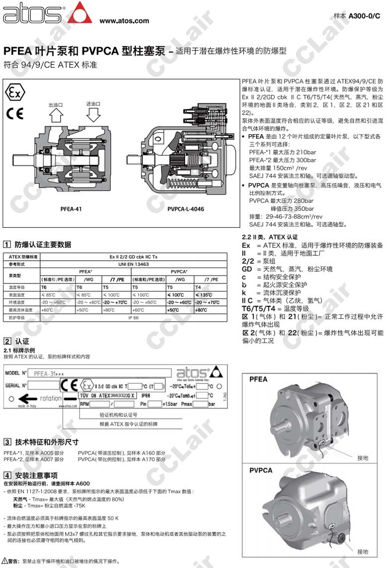 PVPCA-C,PVPCA-CH,PVPCA-R,PVPCA-L,PVPCA-LW,PVPCA-LW-5090/51090/1D,阿托斯ATOS防爆型變量軸向柱塞泵