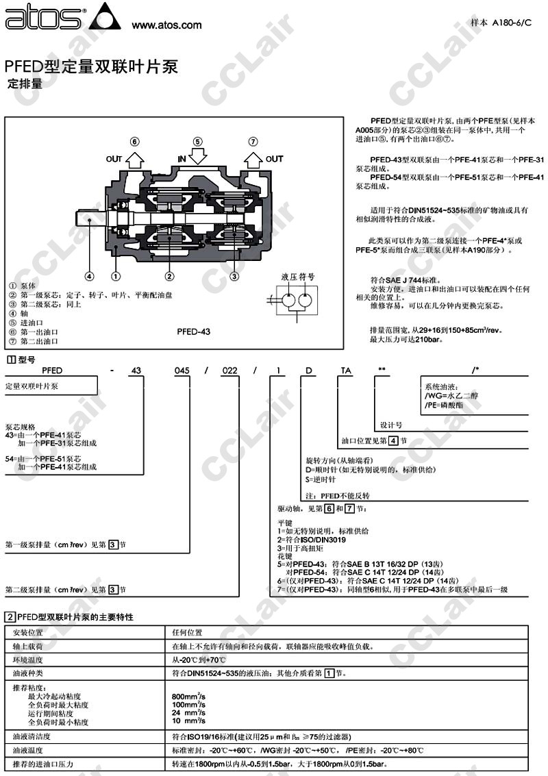 PFED-43029,PFED-43037,PFED-43045,PFED-43056,PFED-43070,PFED-43085,PFED-43085/022/1DTA,阿托斯ATOS定量雙聯(lián)葉片泵