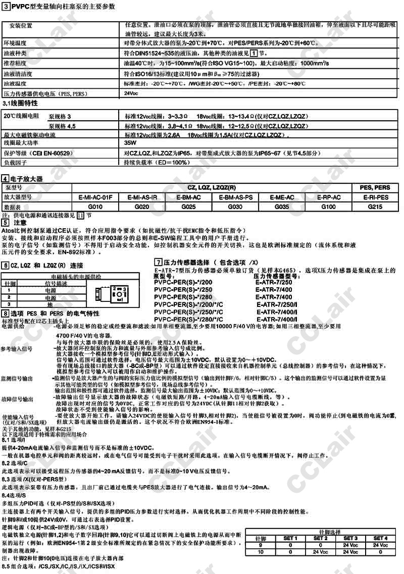 詳細信息 PVPC-CZ,PVPC-LQZ,PVPC-LZQZ,PVPC-PES,PVPC-PERS,PVPC-PES-BC-3029/250/1D,阿托斯ATOS電液比例控制泵