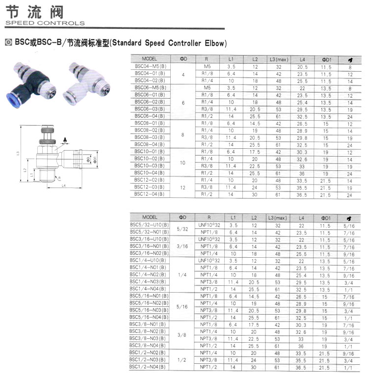 BSC04,BSC06,BSC08,BSC10,BSC12,BSC5/32,BSC3/16,BSC1/4,BSC3/8,BSC1/2,BSC04-M5(B),節流閥