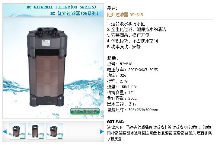 您當前的位置:首頁(yè) » 供應產(chǎn)品 » MC-818,缸外過(guò)濾器
