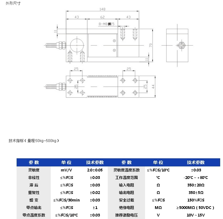 該傳感器彈性體采用彎曲懸臂梁結構,一端固定,一端受力,結構強度好,可用于各種拉伸力和壓縮力的承載和測量。具有:精度高、性能穩定可靠、安裝使用方便等特點(diǎn)。適用于電子秤、衡器等各種測力、稱(chēng)重的工業(yè)自動(dòng)化測量控制系統。