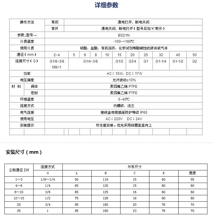 詳細信息 BS21N-DN2,BS21N-DN4,BS21N-DN5,BS21N-DN6,BS21N-DN8,法蘭耐腐蝕電磁閥