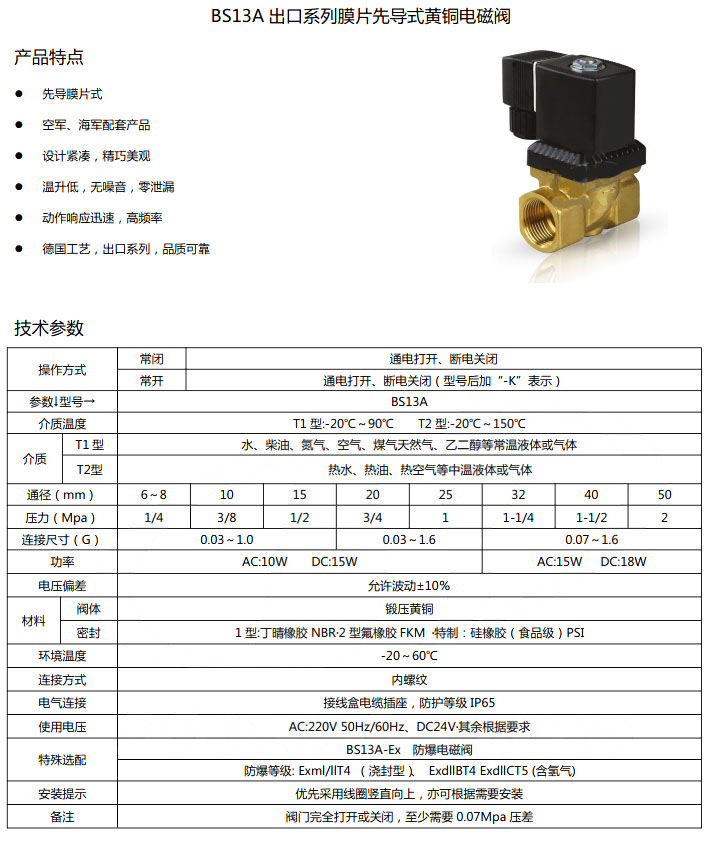 BS13A-DN6,BS13A-DN8,BS13A-DN10,BS13A-DN15,BS13A-DN20,黃銅電磁閥