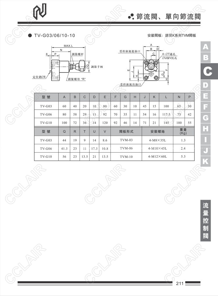 Northman臺灣北部精機,節流閥,單向節流閥TCV-G03-10-N,TCV-G03-10,TCV-G06-10-N,TCV-T06-10,TCV-T10-10-N,TCV-T10-10,TV-G06-10,TV-G10-10-N,TV-G10-10,TV-T06-10,TV-T10-10-N,TV-T10-10