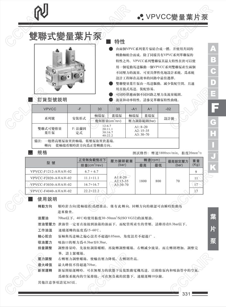 Northman臺灣北部精機,雙聯(lián)式變量葉片泵VPVCC-F1212-A1A1-02,VPVCC-F1212-A2A2-02,VPVCC-F2020-A2A2-02,VPVCC-F2020-A3A3-02,VPVCC-F2020-A2A2-02,VPVCC-F2020-A3A3-02,VPVCC-F4040-A2A2-02,VPVCC-F4040-A3A3-02
