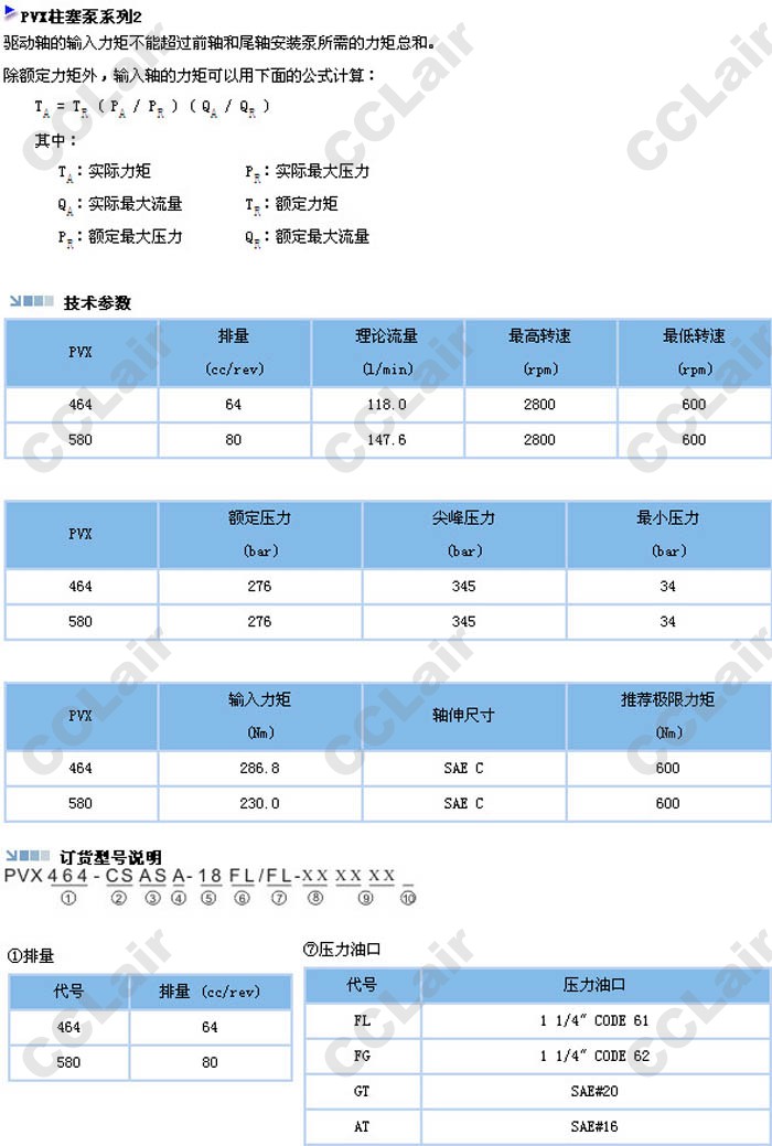 PVX580-CSASA-19FL/LT,PVX580-CSAKA-20FL/FL,柱塞泵