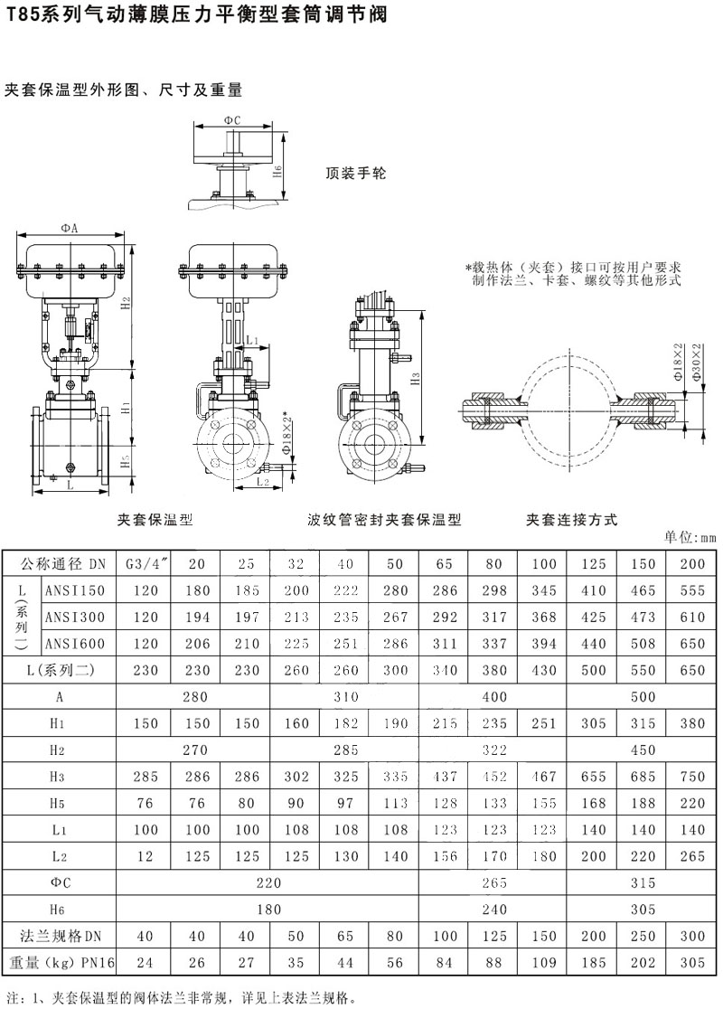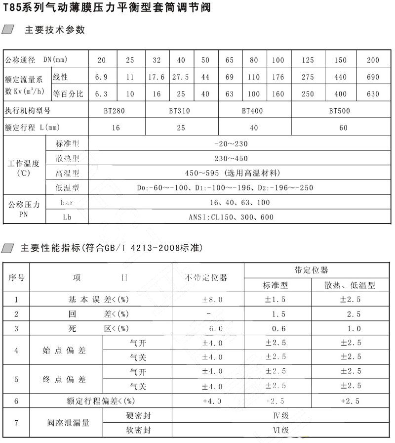 T85-16C-DN50,T85-40C-DN32,T85-63C-DN40,T85-100C-DN20,壓力平衡型套筒調節閥