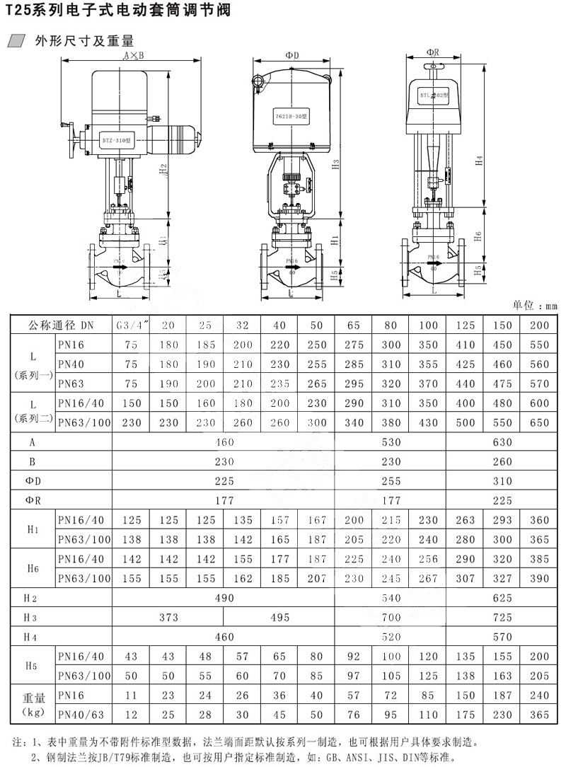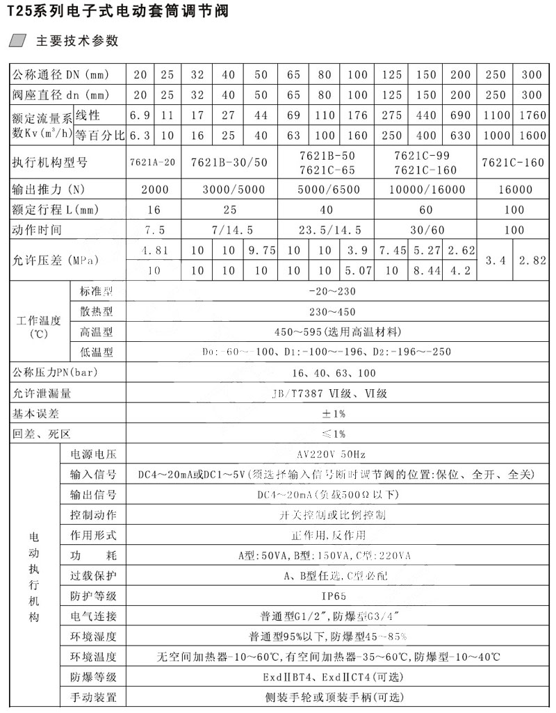 T25-16C-DN50,T25-40C-DN32,T25-63C-DN40,T25-100C-DN20,電子式電動(dòng)套筒調節閥