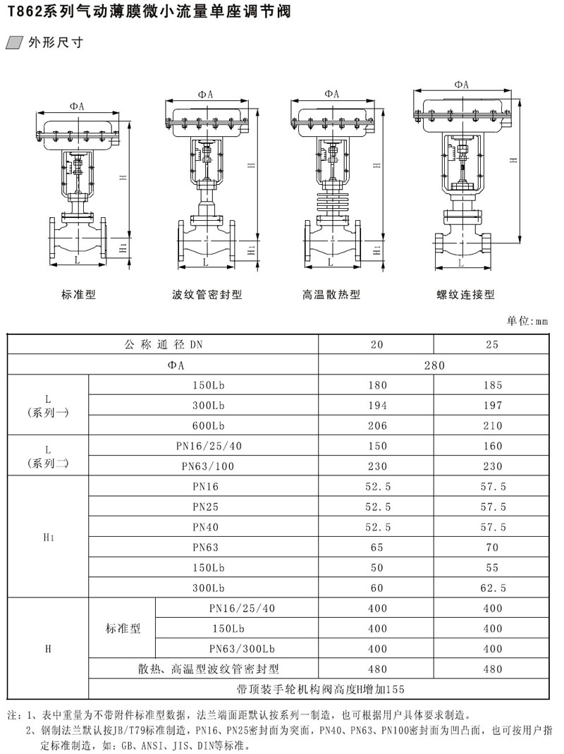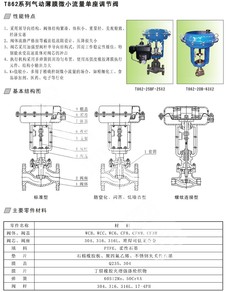 詳細信息 T862-16B,T862-25B,T862-40B,T862-63B,T862-100B-DN20,氣動(dòng)薄膜微小流量單座調節閥