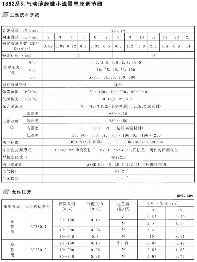 T862-16B,T862-25B,T862-40B,T862-63B,T862-100B-DN20,氣動(dòng)薄膜微小流量單座調節閥