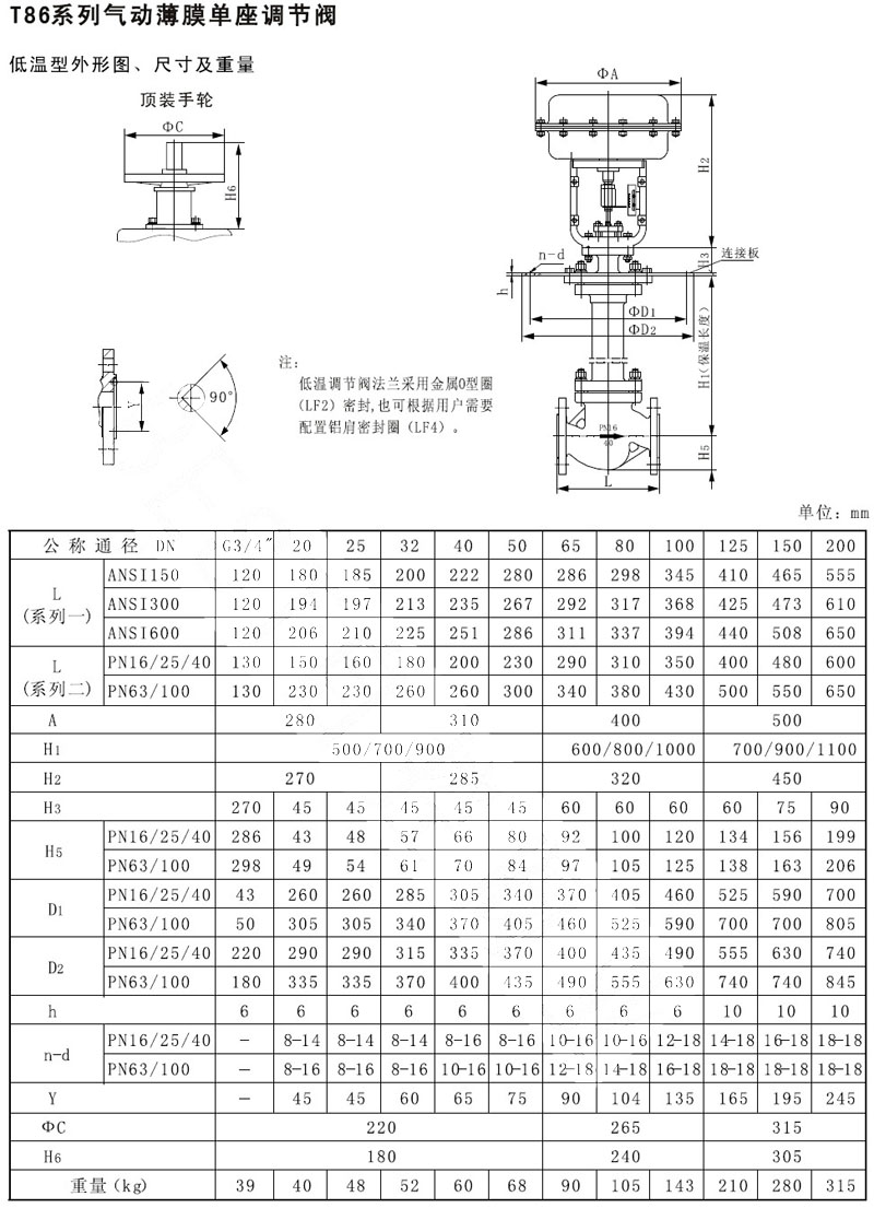 T86-16C,T86-16B,T86-25C,T86-40B,T86-63C,T86-100B,氣動(dòng)薄膜單座調節閥