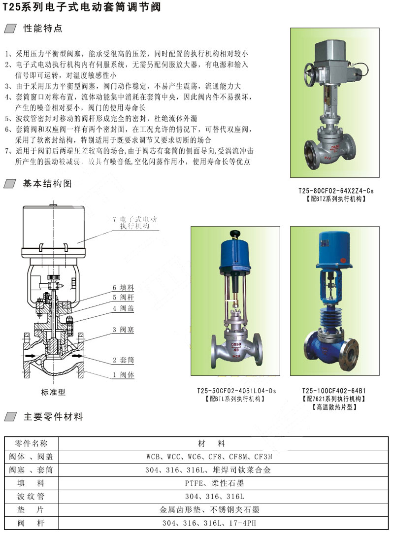 T25-16C-DN50,T25-40C-DN32,T25-63C-DN40,T25-100C-DN20,電子式電動(dòng)套筒調節閥
