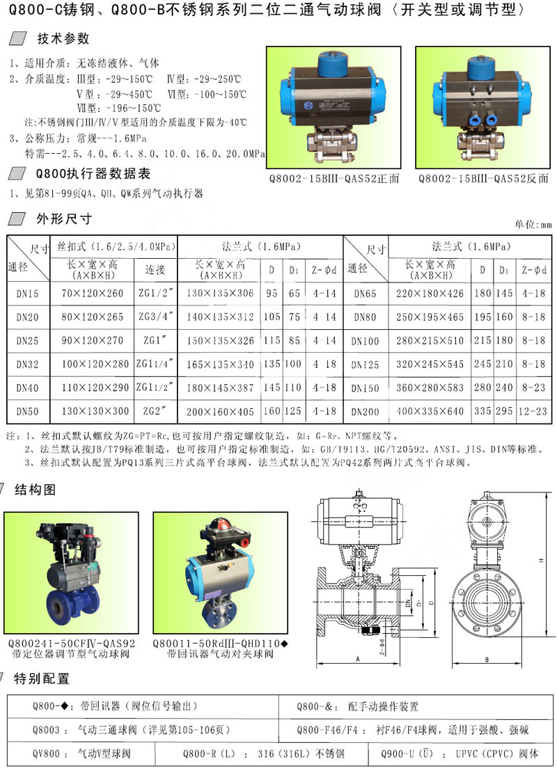 Q8002-15,Q8002-20,Q80011-25,Q80011-32,Q80012-40,Q80012-50,氣動(dòng)二通球閥