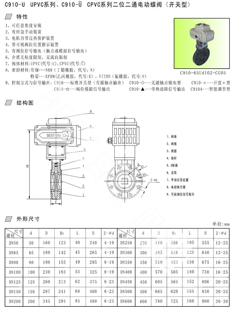 C910-50,C910-65,C910-80,C910-100,C910-125,C910-150,C910-200,電動(dòng)蝶閥