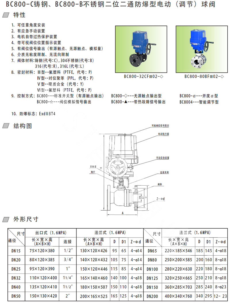 BC800-15,BC800-20,BC800-25,BC800-32,BC800-40,BC800-50,不銹鋼防爆電動(dòng)球閥