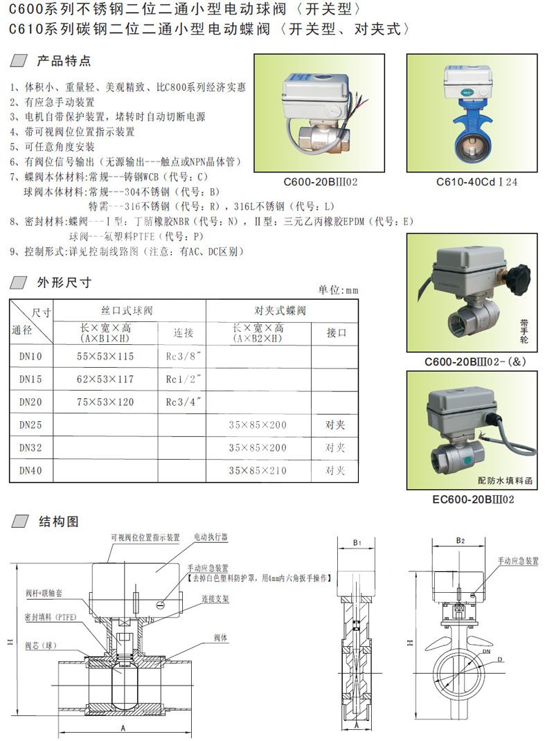 C600-10,C600-15,C600-20,C610-25,C610-32,C610-40,二位二通小型電動(dòng)閥