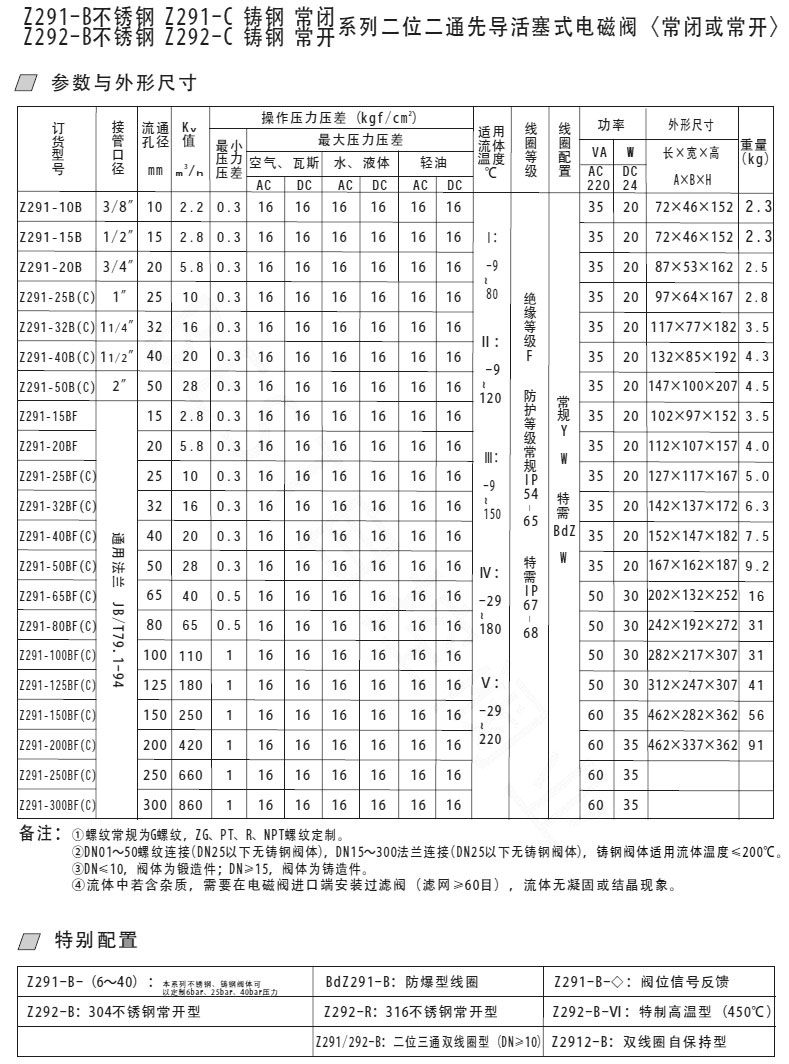 Z291-10B,Z291-15B,Z291-25BC,Z291-32BF,Z291-40BF,Z291-50BFC,先導活塞式電磁閥