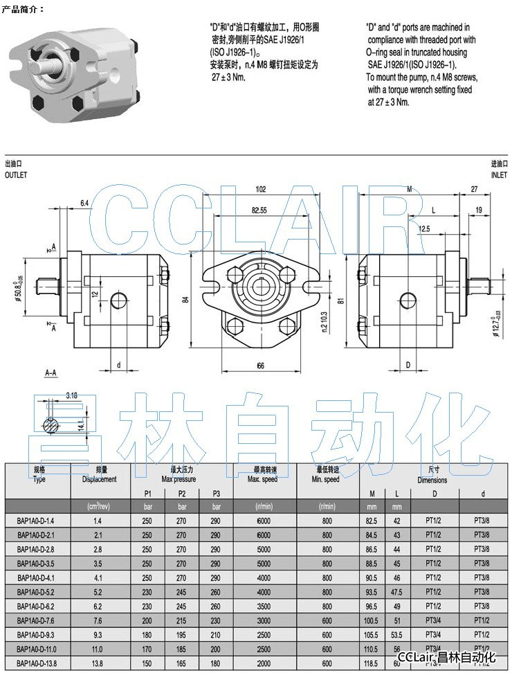 BAP1A0-D-1.4,BAP1A0-D-2.1,BAP1A0-D-2.8,齒輪泵