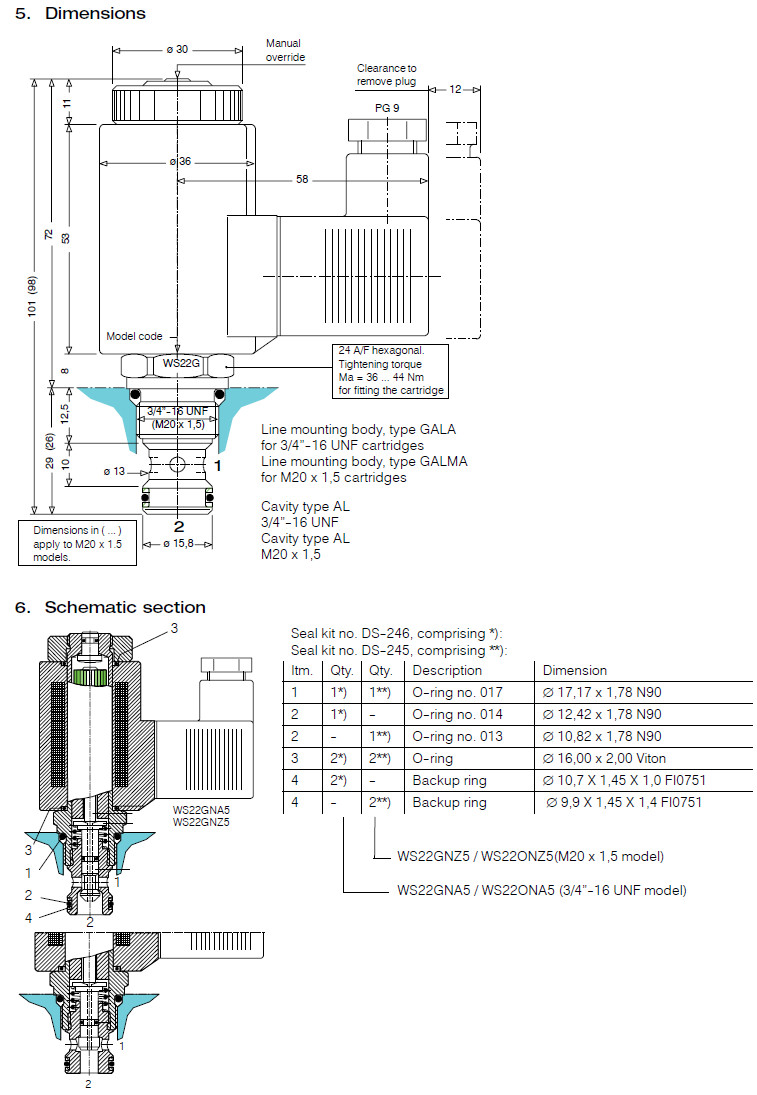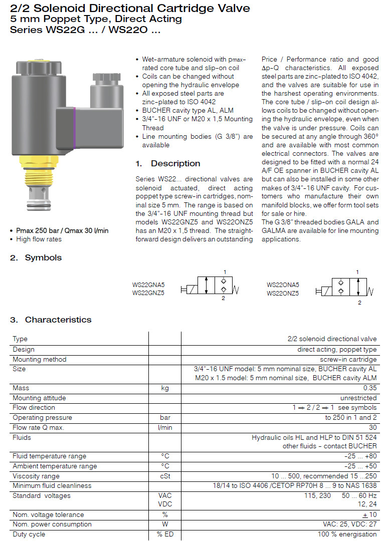 詳細信息 WS22GNA5-1,WS22GNA5V-1,WS22ONA5-1,WS22ONA5V-1,Bucher方向閥
