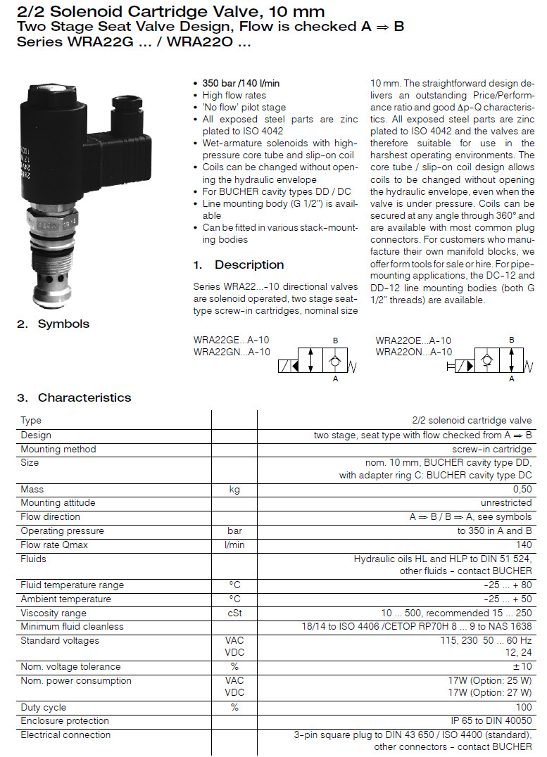 WRA22GEDA-10-1,WRA22OEDA-10-1,WRA22GNCA-10-1,WRA22ONCA-10-1,Bucher方向閥