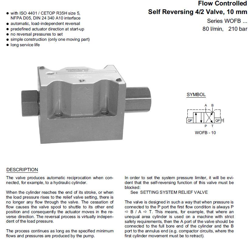 詳細信息 WOFB-10-1,WOFB-10V-1,Bucher自換向閥