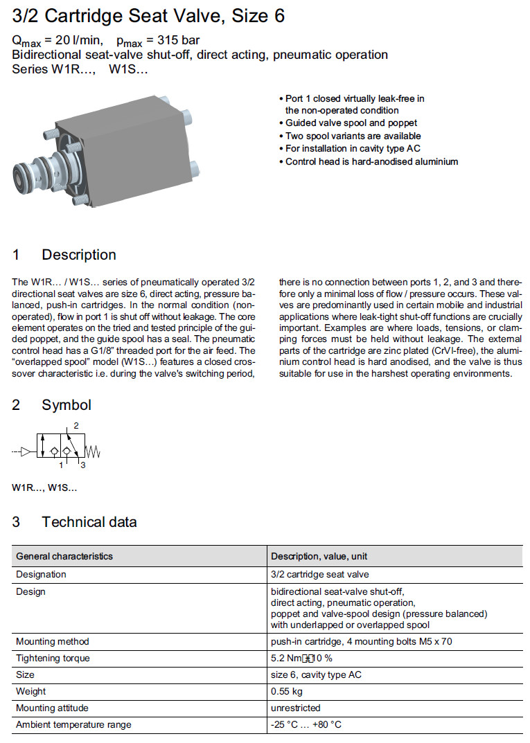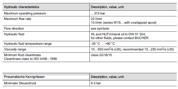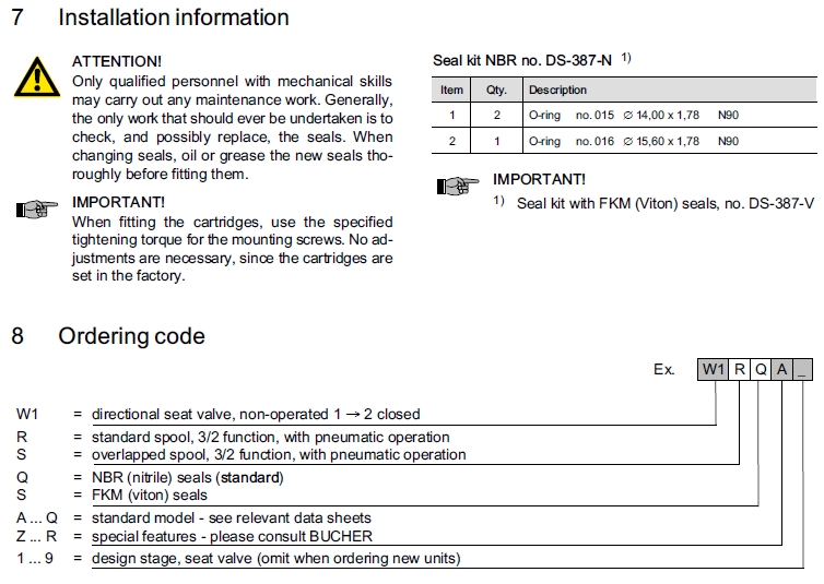 詳細信息 W1RQA1,W1RSA1,W1SQA1,W1SSA1,Bucher方向閥