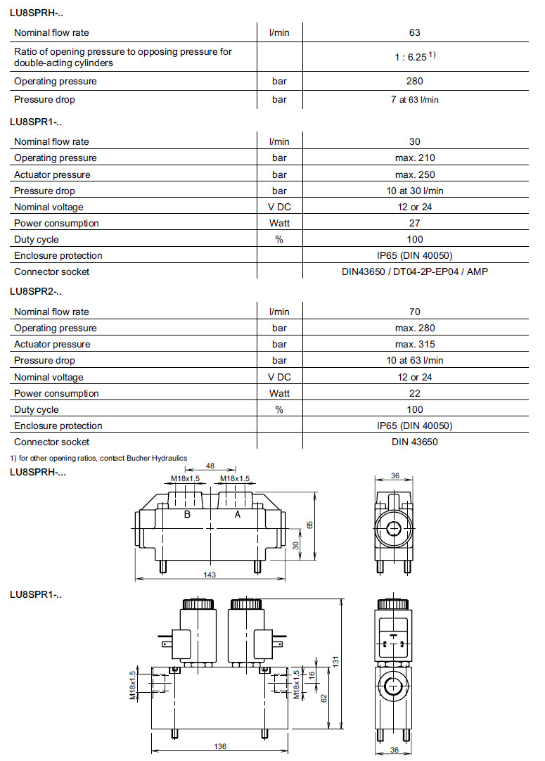 詳細信息 LU8SPR1-DVA,LU8SPR1-ZVA,LU8SPRH-DVA,LU8SPRH-ZVA,LU8SPR2-DVA,LU8SPR2-ZVA,Bucher鎖止回閥