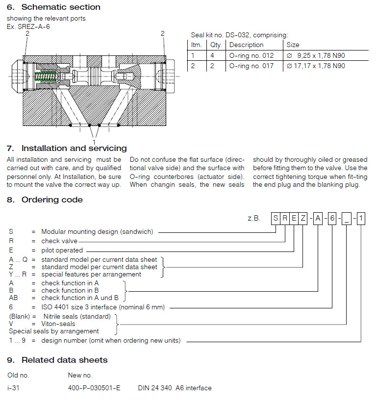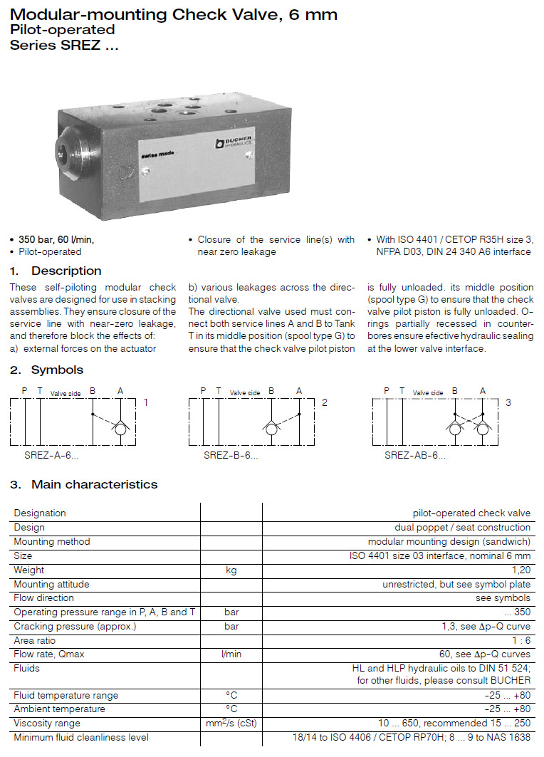 詳細信息 SREZ-A-6-1,SREZ-B-6-1,SREZ-AB-6-1,SREZ-A-6-V-1,SREZ-B-6-V-1,SREZ-AB-6-V-1,Bucher模塊安裝止回閥