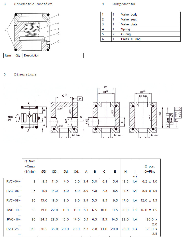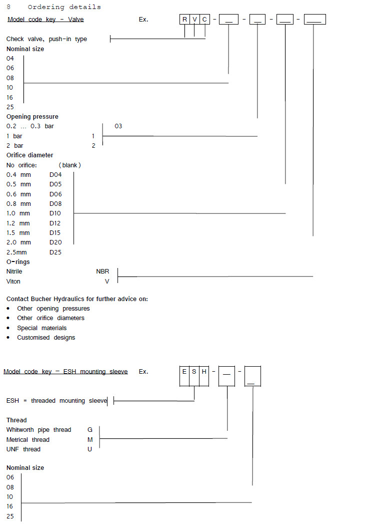 詳細信息 RVC-04-03,RVC-06-03,RVC-08-03,RVC-10-03,RVC-16-03,RVC-25-03,Bucher止回閥