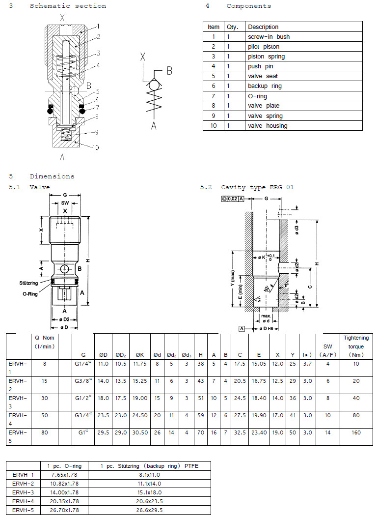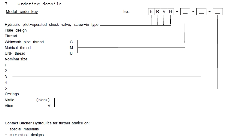 詳細信息 ERVH-G-1,ERVH-G-2,ERVH-G-3,ERVH-M-3,ERVH-M-4,ERVH-U-4,ERVH-U-5,Bucher先導式單向閥