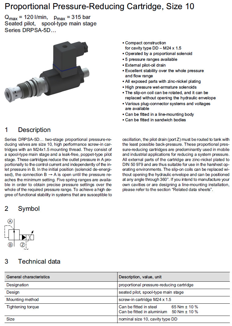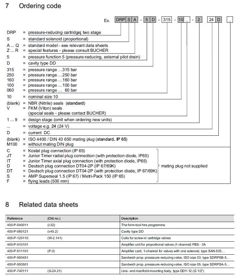 詳細信息 DRPSA-5D-100,DRPSA-5D-060,DRPSA-5D-315,DRPSA-5D-250,DRPSA-5D-160,Bucher減壓閥
