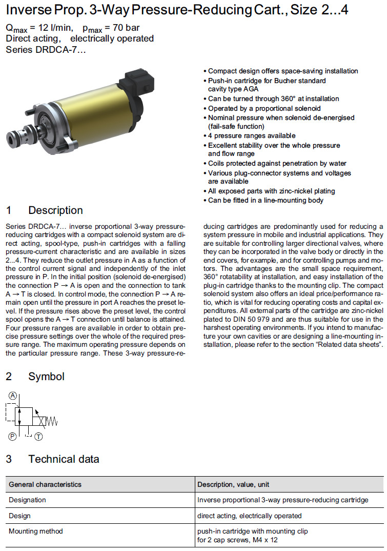 詳細信息 DRDCA-7045-2-2,DRDCA-7028-3-2,DRDCA-7022-3-2,DRDCA-7016-4-2,Bucher減壓閥