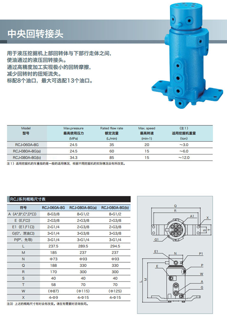 詳細信息 RCJ-060A-8G,RCJ-080A-8G(a),RCJ-080A-8G(b),NACHI中央回轉接頭