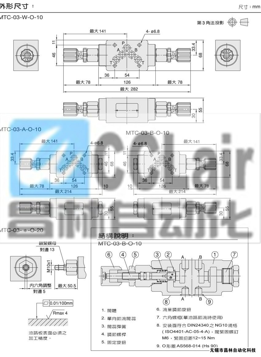 MTC-03-W-0-10,MTC-03-W-0-20,MTC-13-W-1-10,MTC-13-W-1-20,MTC-03-A-0-10,疊加式單向節流閥