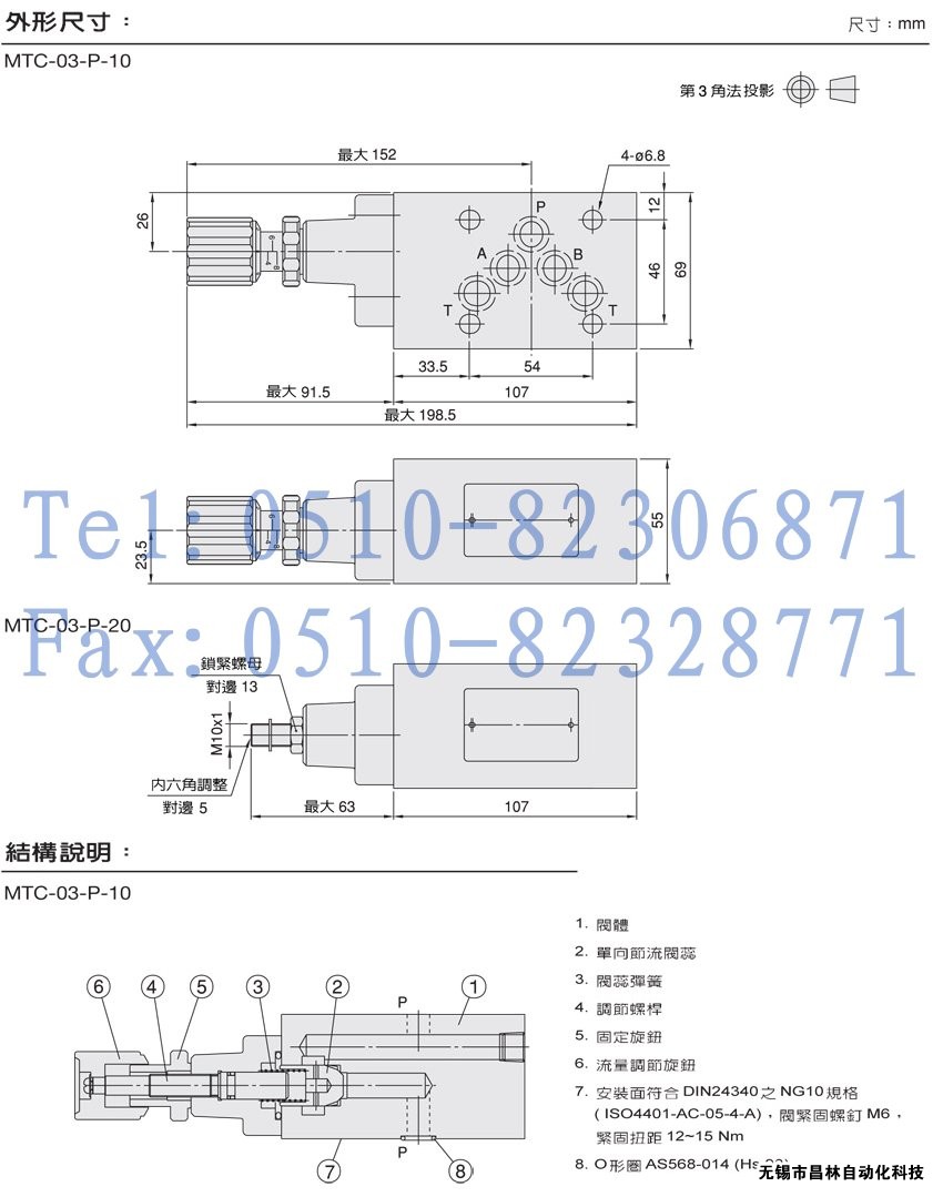 MTC-03-P-10,MTC-03-P-20疊加式單向節流閥