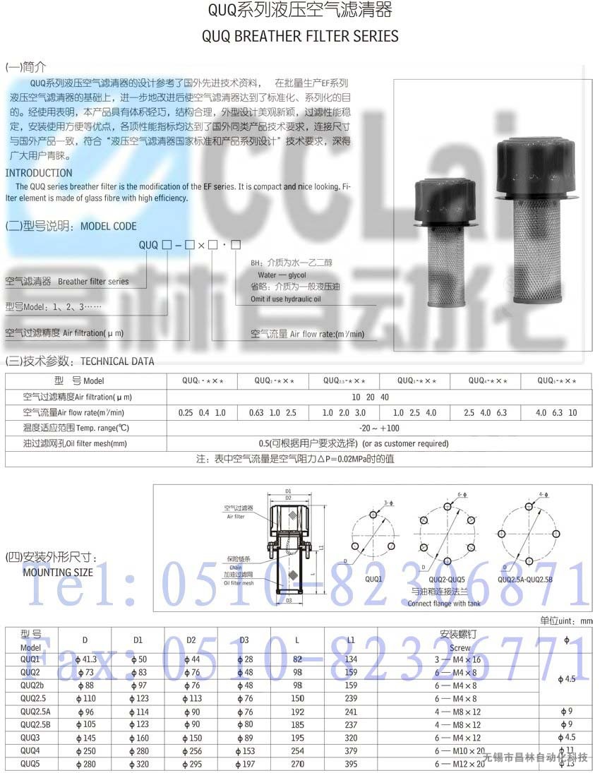 QUQ1-20*0.4,QUQ1-20*1.0,QUQ1-40*0.25,QUQ1-40*0.4,QUQ1-40*1.0液壓空氣濾清器