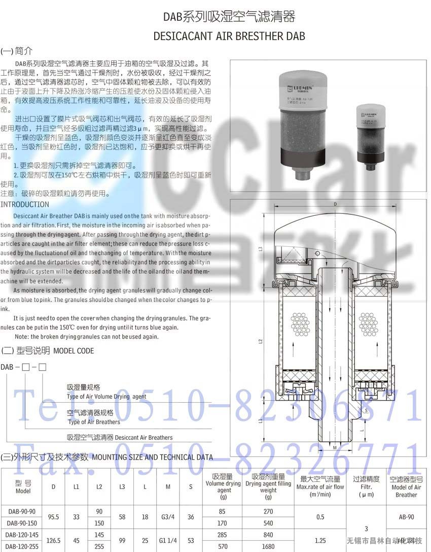 詳細信息 DAB-90-90,DAB-90-150,DAB-120-145,DAB-120-255,吸濕空氣濾清器
