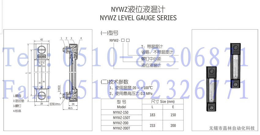 NYWZ-150,NYWZ-150T,NYWZ-200,NYWZ-200T,液位液溫表