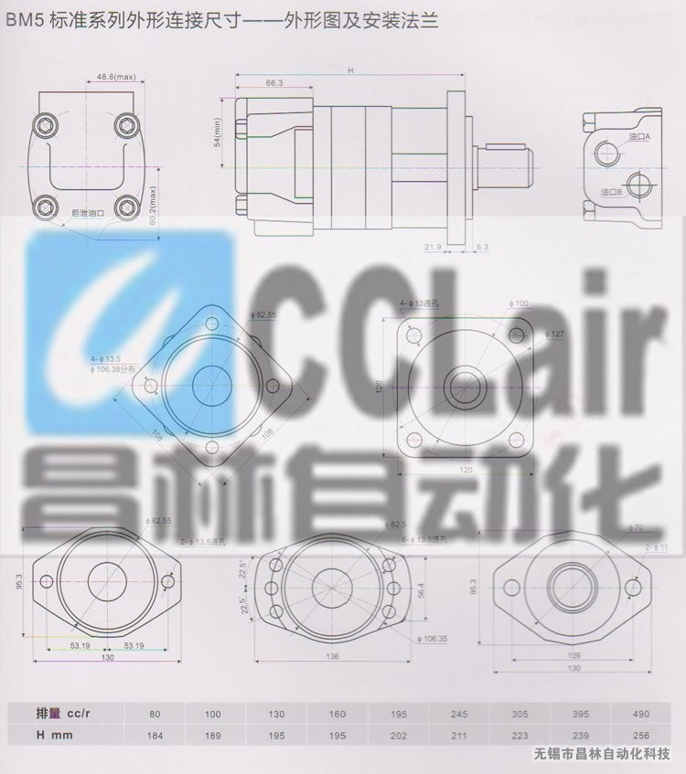 BM5-195,BM5-245,BM5-305,BM5-395,BM5-490擺線(xiàn)液壓馬達