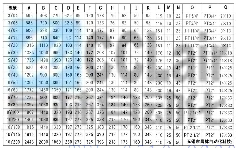 | 冷卻器規格 | 3Y04 | 3Y06 | 4Y08 | 4Y12 | 4Y20 | 5Y30 | 5Y40 |
