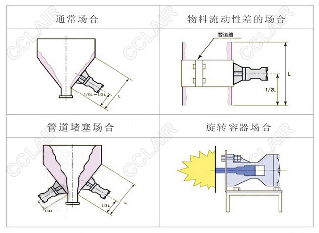 ◎通過(guò)壓縮空氣為動(dòng)力,瞬間釋放,推動(dòng)內部的錘頭打擊底部,將強力沖力傳遞給料斗壁面,有效地擊破物料所構成的拱橋,使積料松動(dòng),達到卸灰順暢的目的。